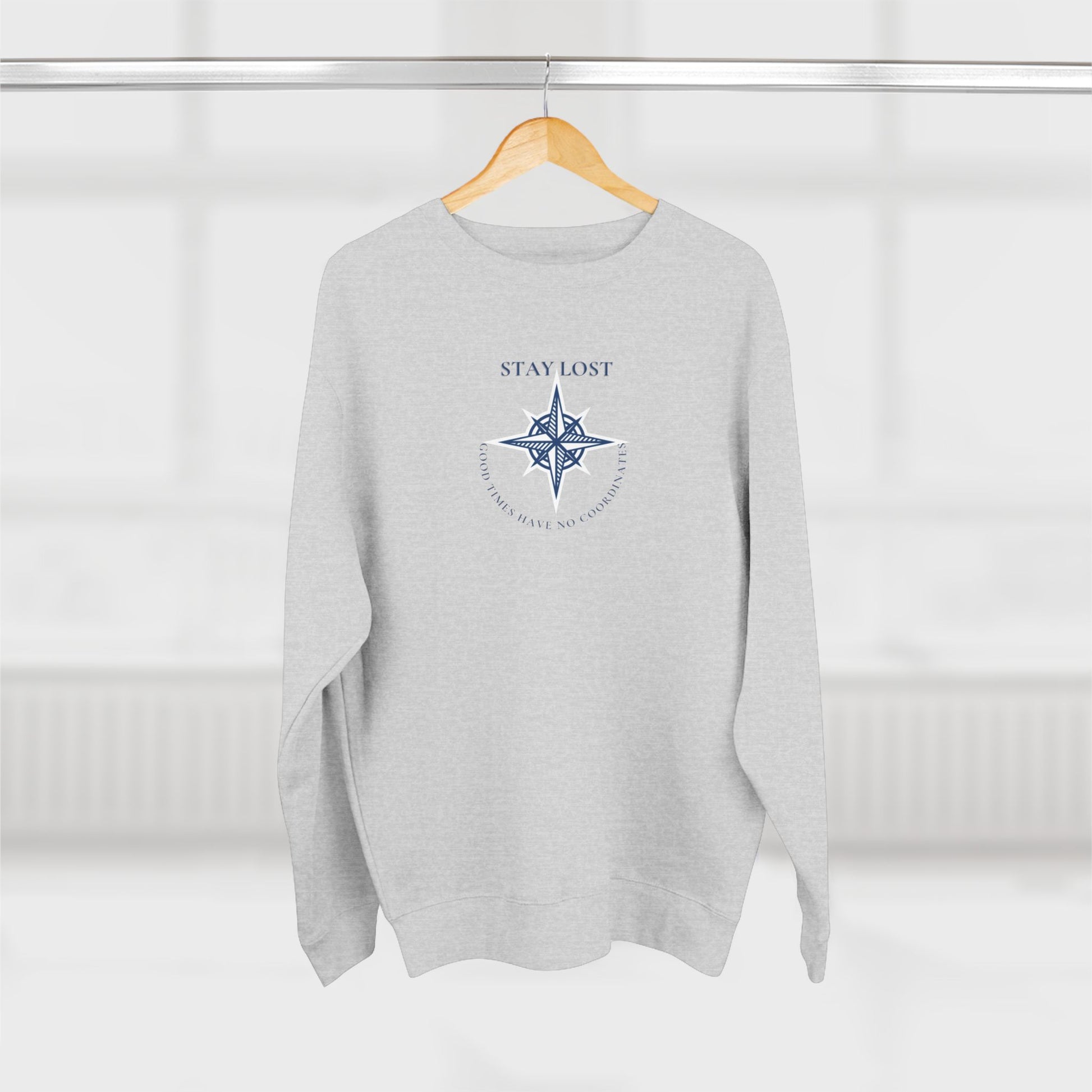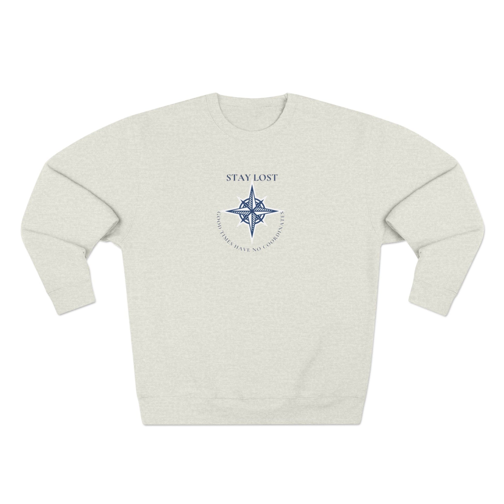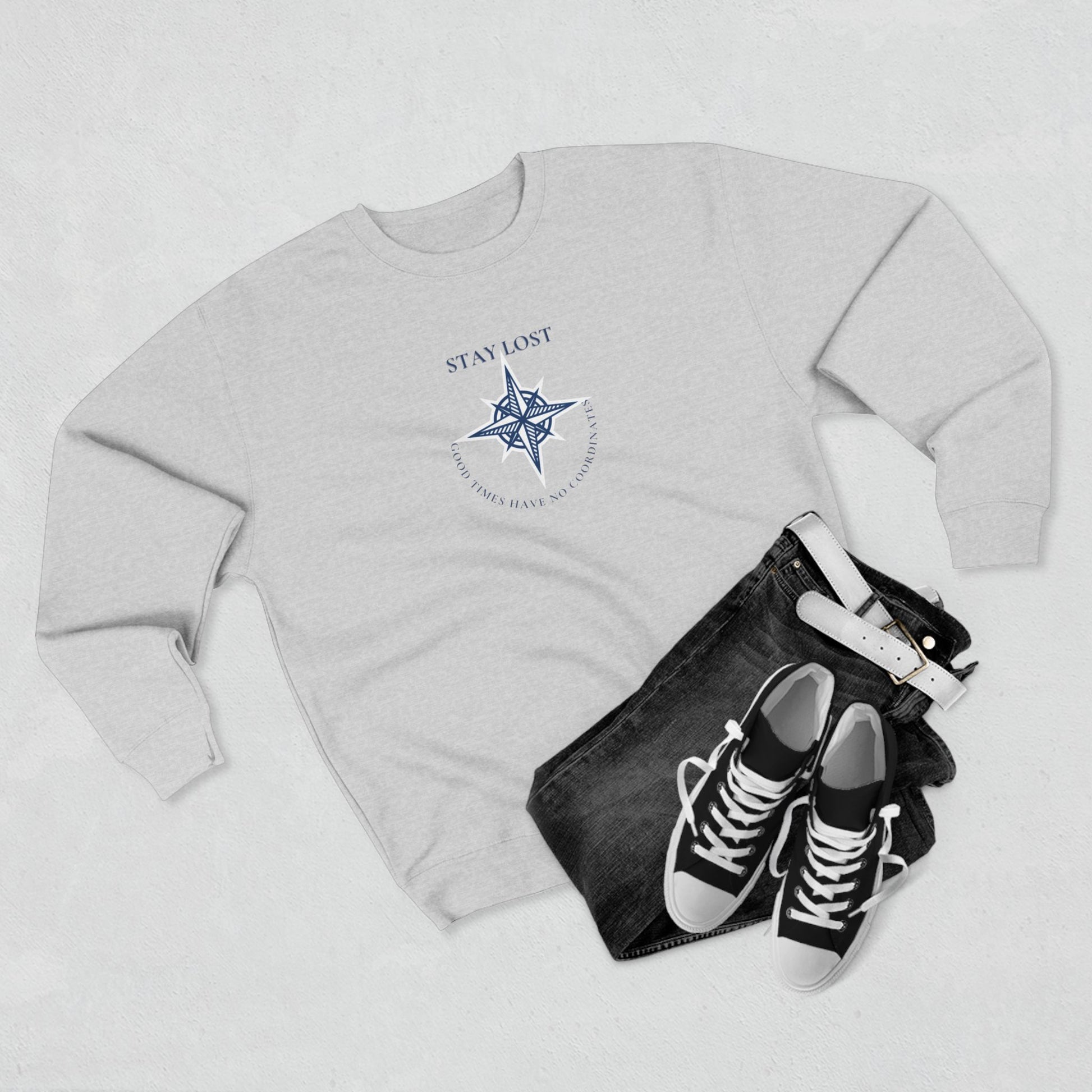 A cozy, medium-weight crewneck that feels like a soft compass for days when you need to wander. The lightweight fleece interior and structured rib collar hold their shape while the subtle compass graphic and “STAY LOST” script invite quiet adventure. Wear it on slow mornings with coffee, while mapping out a road trip, or layered for foggy coastal walks. The relaxed fit and neat side seams give this sweatshirt a neat silhouette without feeling stiff. It’s for people who prefer lived-in comfort and a hint of wanderer spirit in their wardrobe.
