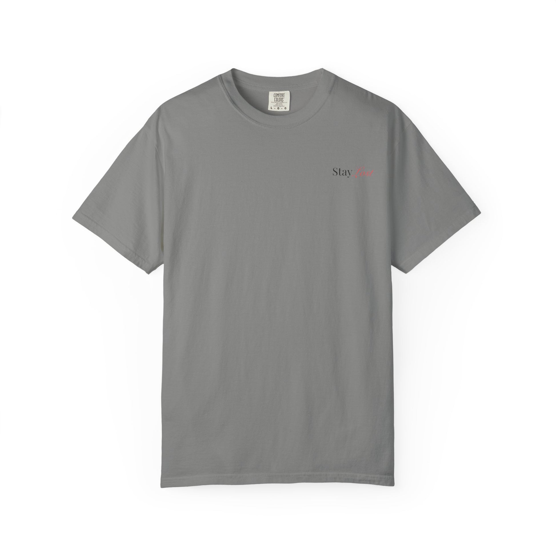 A soft, garment-dyed cotton tee with a quiet, thoughtful message. This relaxed-fit shirt wears in gently — the color and texture come alive after dyeing, giving each piece a lived-in comfort that invites daily wear. The front carries a small, subtle script near the chest while the back features a short line of text that reads like a personal reminder: a simple phrase meant to center you on the move. Durable double-needle stitching and a tubular knit body keep the silhouette clean and long-lasting, while the medium-weight fabric holds its shape through regular use. It’s for people who prefer understated design and meaningful words — something to pull on for slow mornings, road trips, or neighborhood walks when you want your clothes to feel like part of the story.