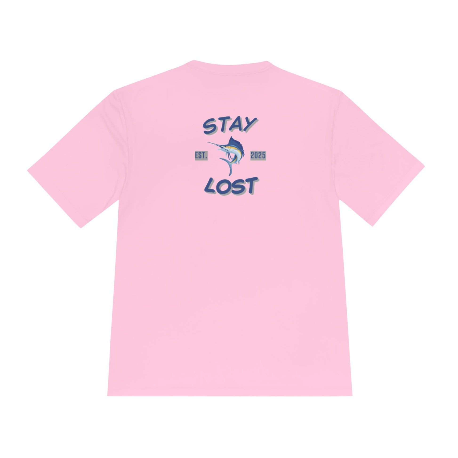 A lightweight performance tee crafted for days on the water and afternoons chasing wind and waves. The breathable, quick-dry polyester keeps you cool when the sun’s high and the action heats up. A small chest logo and a bold back graphic — a hooked marlin framed by the words “STAY LOST” — give this shirt a salty, adventurous spirit. Wear it on the boat, at the marina, or out with friends after a long day of fishing; it moves with you, holds its shape, and fades into the background so you can focus on the next cast.