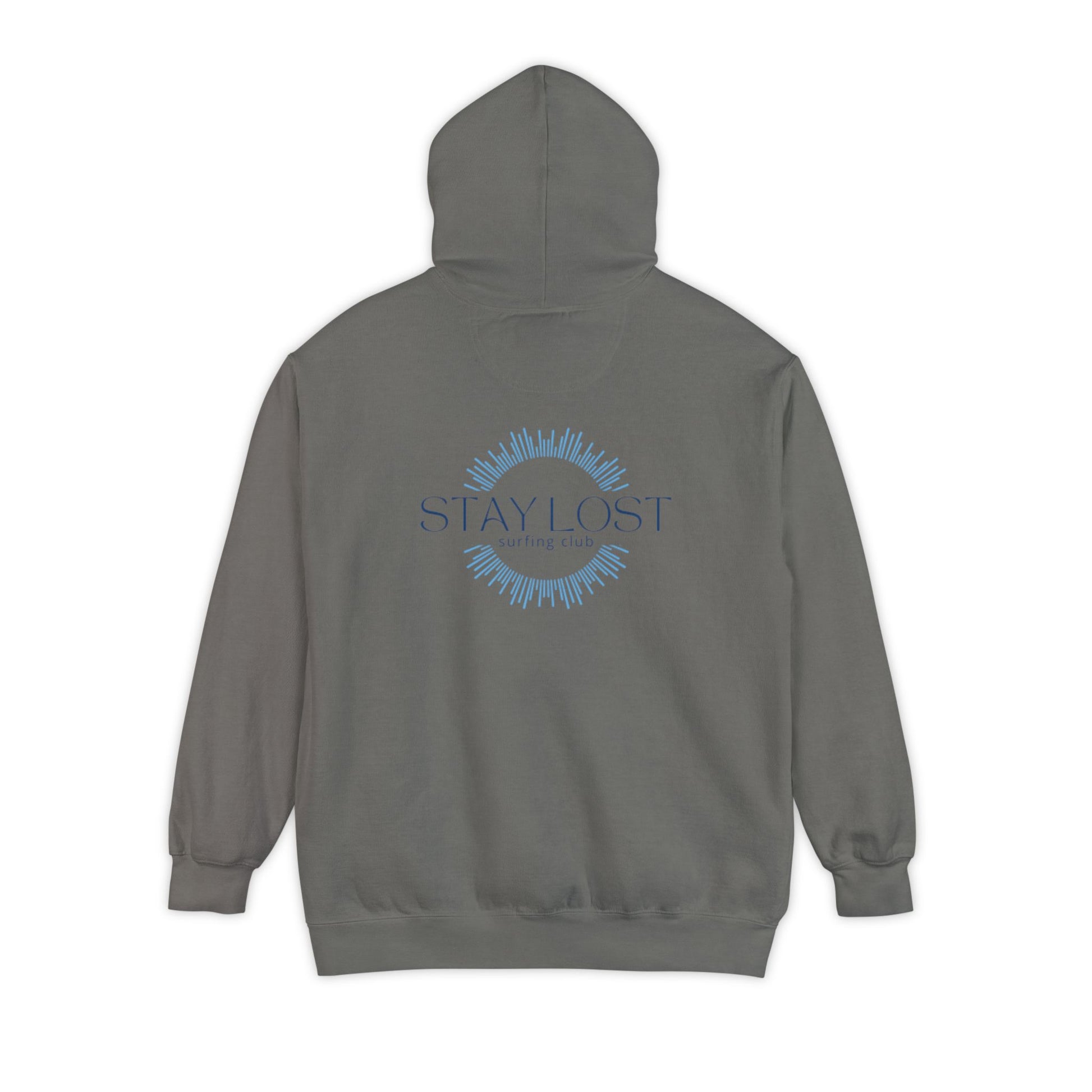 Lightweight warmth with a quiet, wanderer’s heart. This garment-dyed hoodie wraps you in dense, ringspun cotton that feels lived-in from the first wear. A small compass-like emblem sits over the chest while a soft, sunburst-style crest and the words “STAY LOST” rest across the back — a subtle invitation to roam, get turned around, and find new corners of yourself. The heavy, relaxed cut and ribbed cuffs give it that slow-weekend silhouette; the lined hood and drawcords add comfort on blustery mornings. Wear it on foggy drives, late-night stargazing, and slow coffee walks when you want clothing that speaks quieter than a slogan and keeps you cozy through the detours.